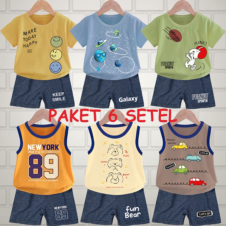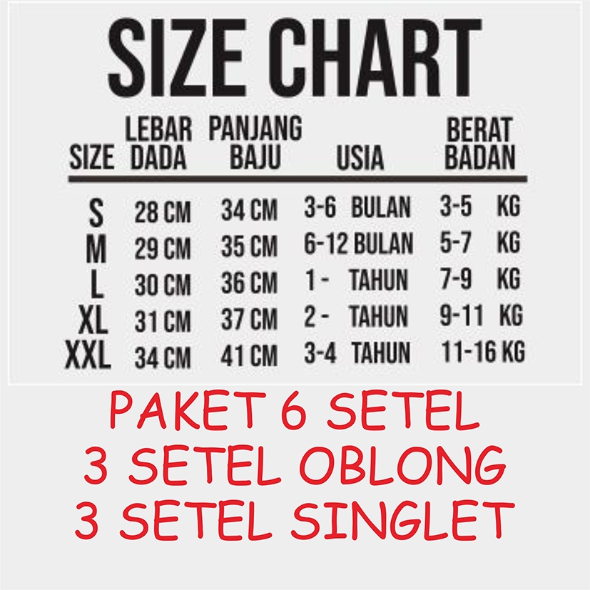PAKET YES 6 SETEL 3SET OBLONG DAN 3 SET SINGLET CELANA DENIM Dari usia 3BULAN - 4TAHUN