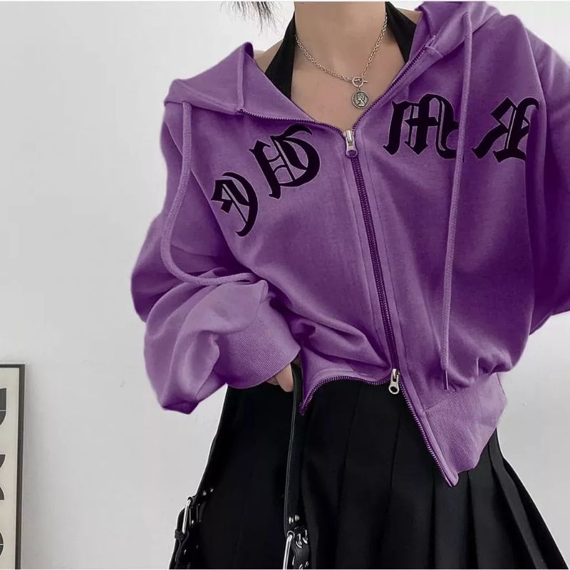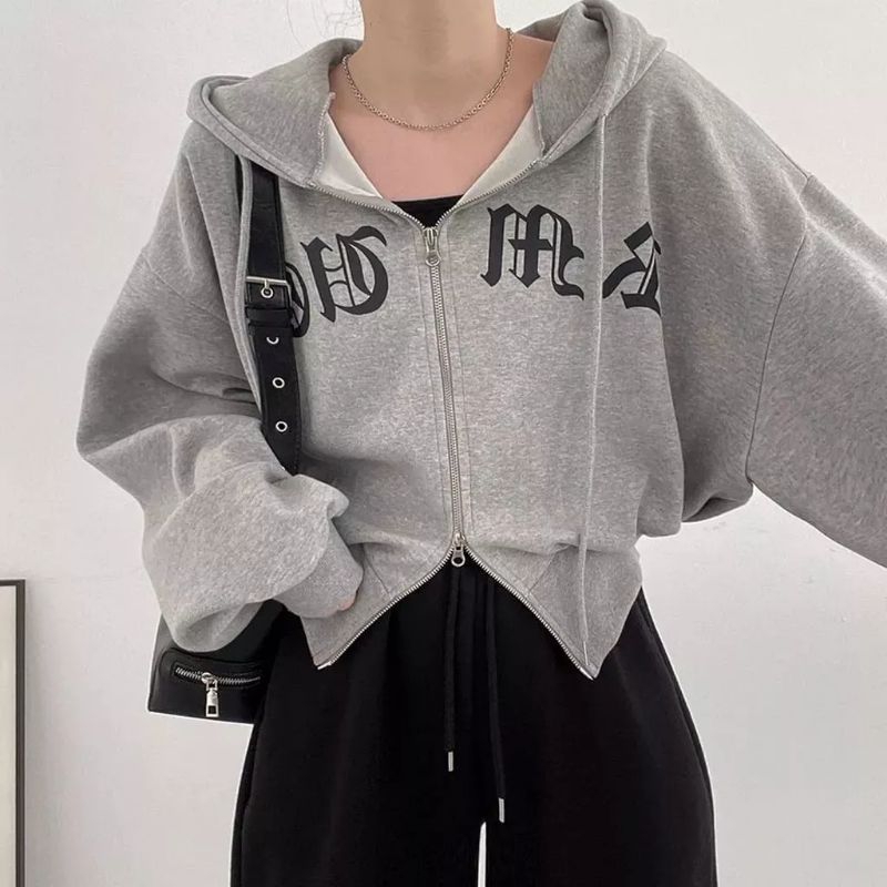 Jaket Wanita Double Zipper Fleece Korean Style