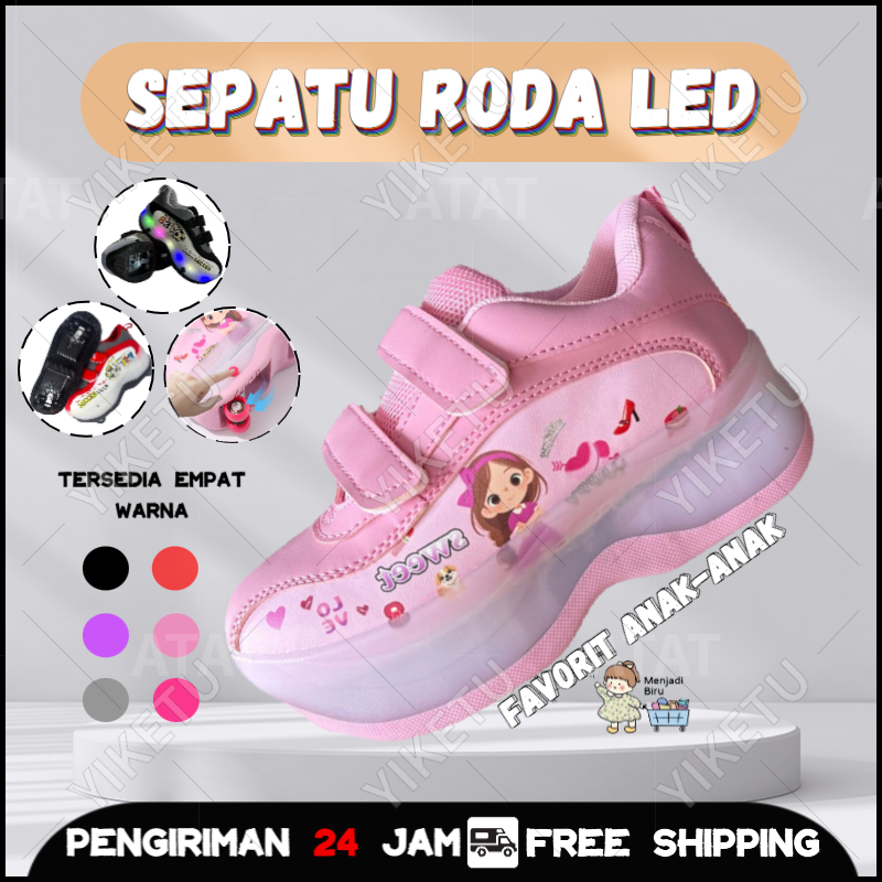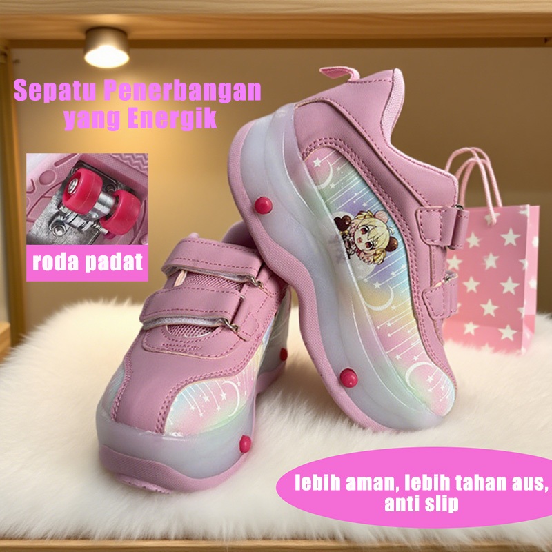 sepatu roda anak perempuan automatic LED 2-in-1/sepatu sport & roda/nyaman dipakai seharian