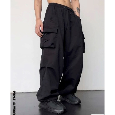 celana baggy cargo gombrang komprang parasut panjang streetwear korean style unisex wanita pria highwaist SKOUTWEAR Highwaist Loose Korean Style