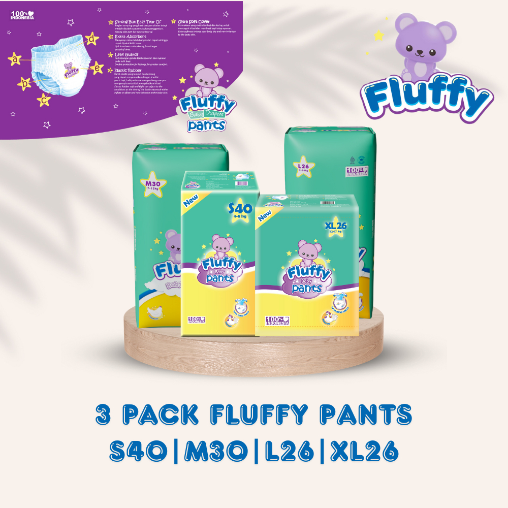 FLUFFY Termurah Popok Bayi Hemat Tipe Celana Size S 40, M 30, L 26, XL 26, Pcs x 3 Bag