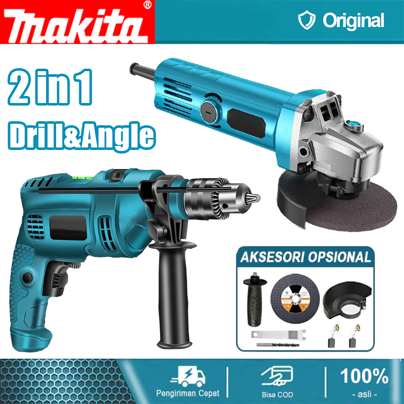 MAKlTA 2 IN 1Bor Dan Gerinda Mesin Bor Listrik Gerinda Dan Bor Dapat Box Paket Lengkap Gerinda/Gerinda Murah 4 Inch Pake
