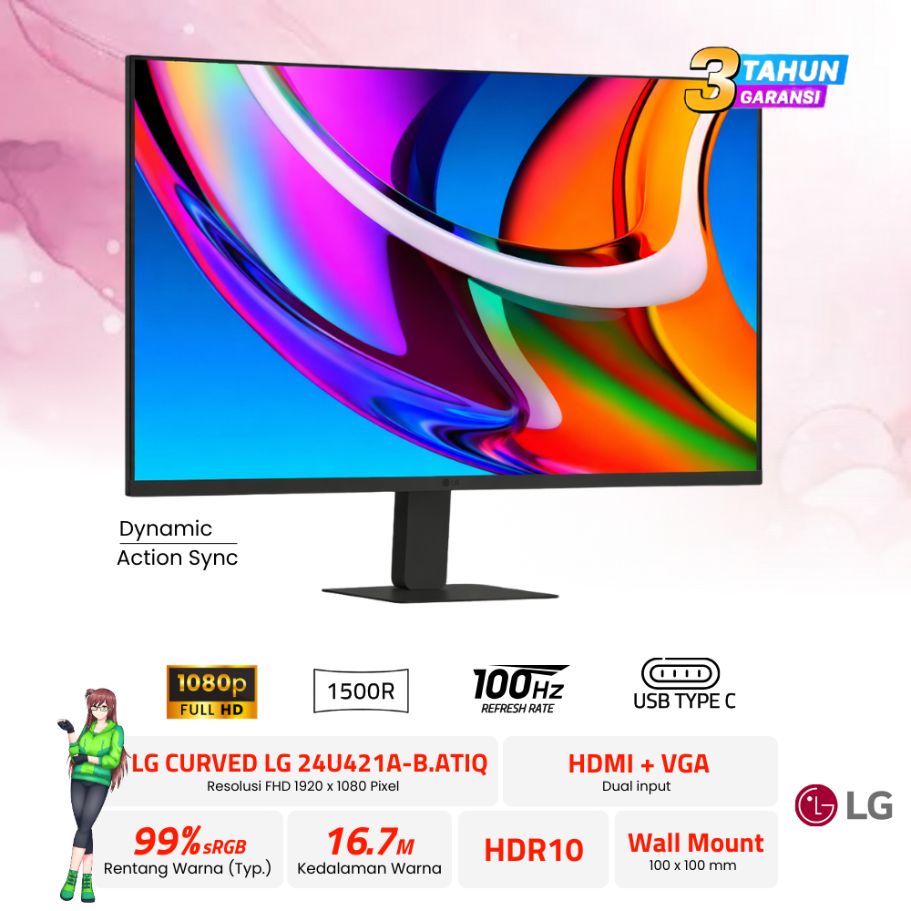 Monitor LG 27" Curved 27U421A-B | LG 24" Curved 24U421A-B 100Hz Full HD HDMI VGA Borderless