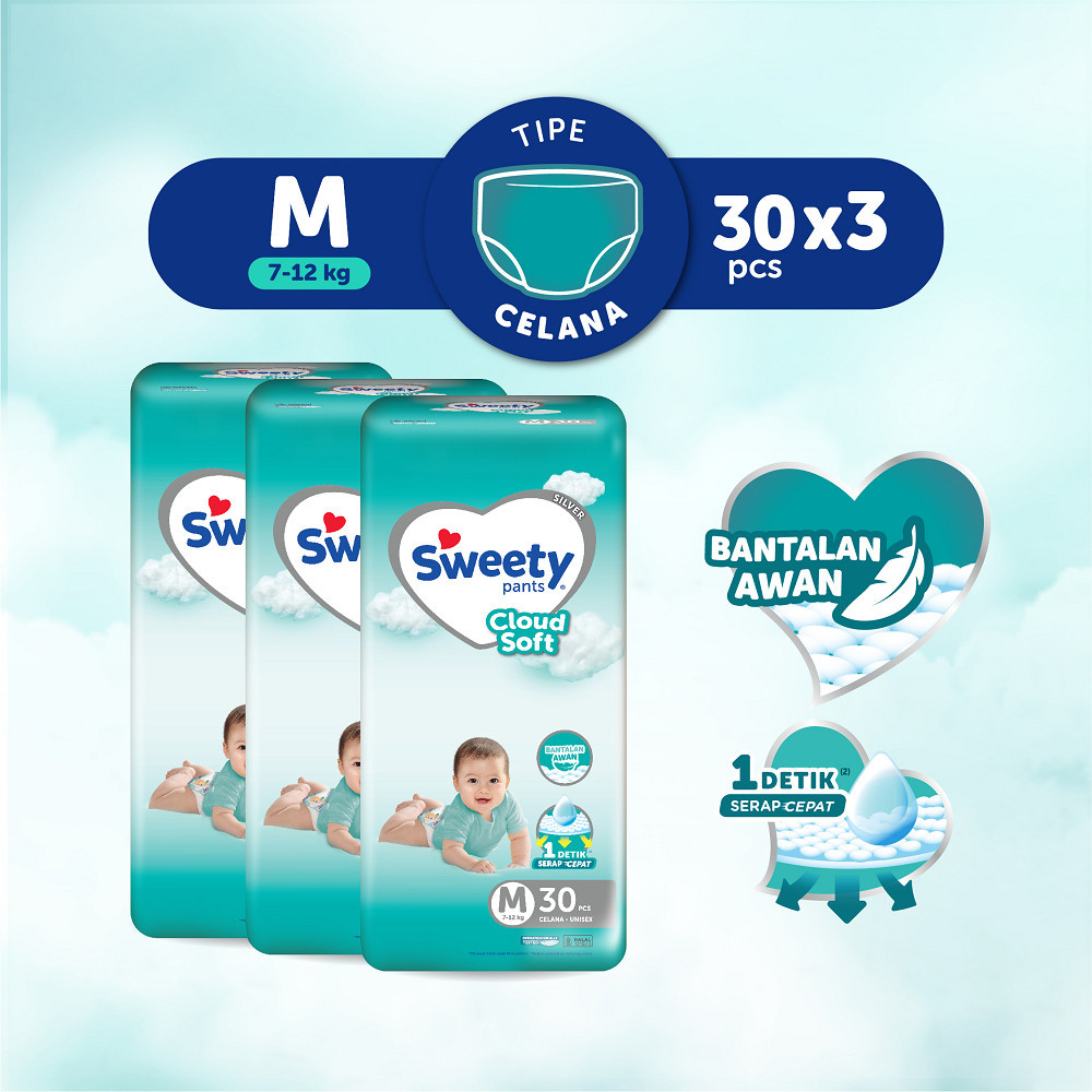 Sweety Silver Pants Cloud Soft M 3 x 32s Popok Celana Baby Diapers - Special Upcount