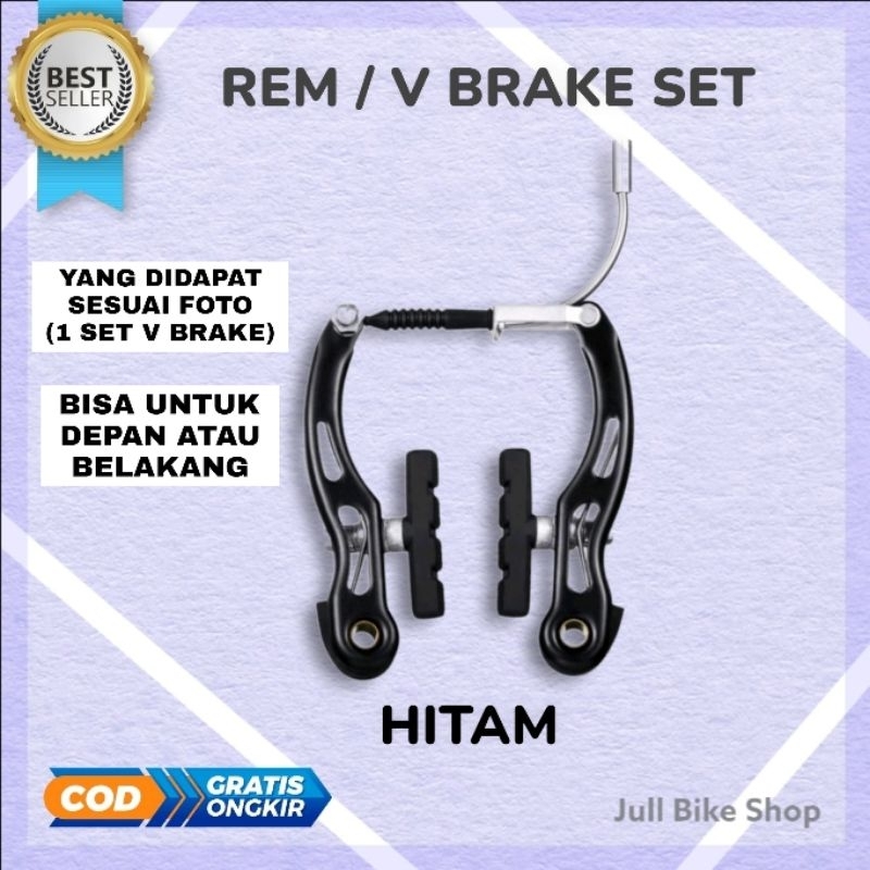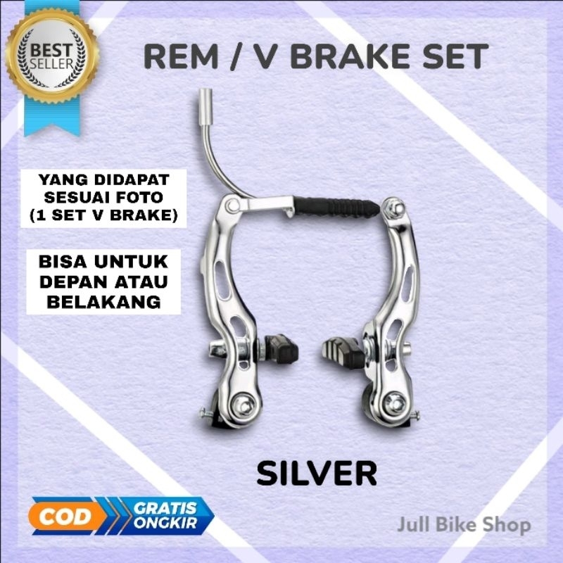 V brake rem sepeda set bmx lipat mtb u 1 set hitam silver depan atau belakang tanpa kabel kuat kampas pipa