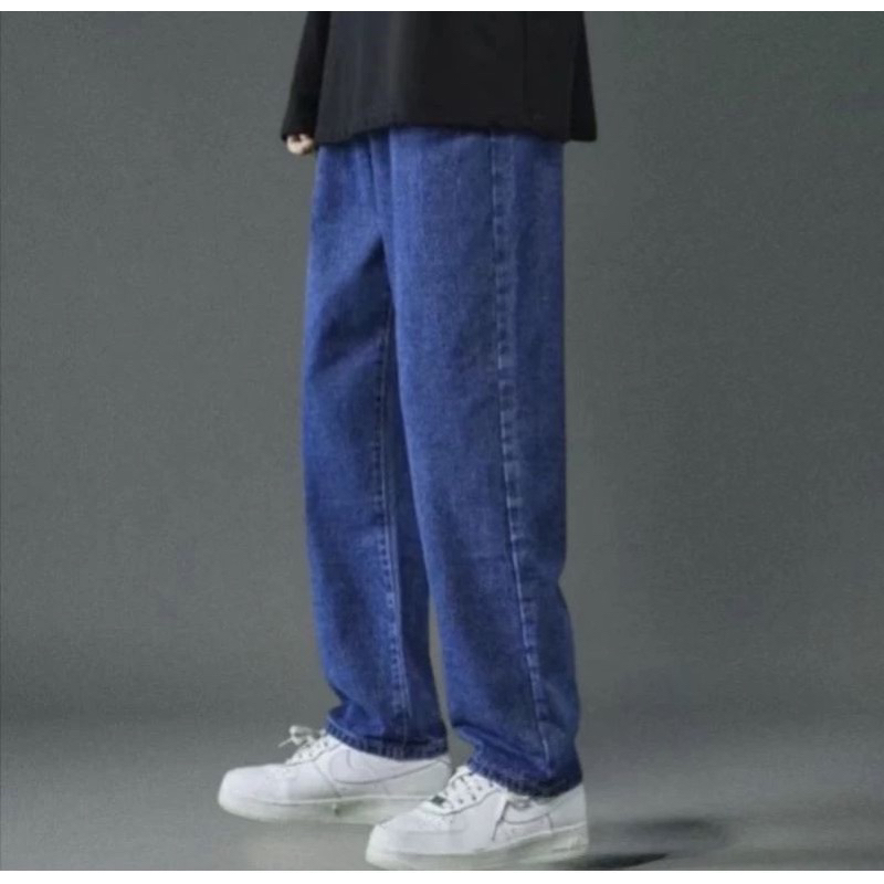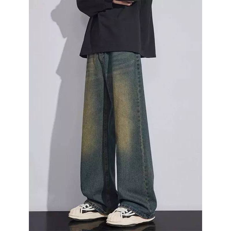 Celana Jeans Panjang Pria Korean Style - Celana Losefit Whisker Retro - Baggy Jeans Pria Gombrong Premium