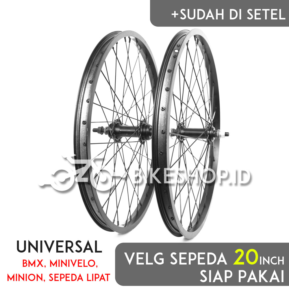 Wheelset Velg Sepeda Uk 20 Alloy Hitam Depan / Belakang Rims Roda Siap Jadi | High Quality