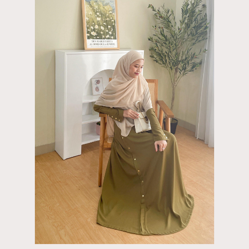 Gold Button Abaya Dress Monaco Material XS-3XL