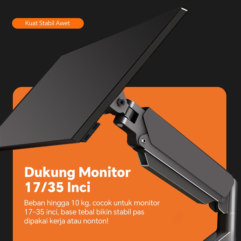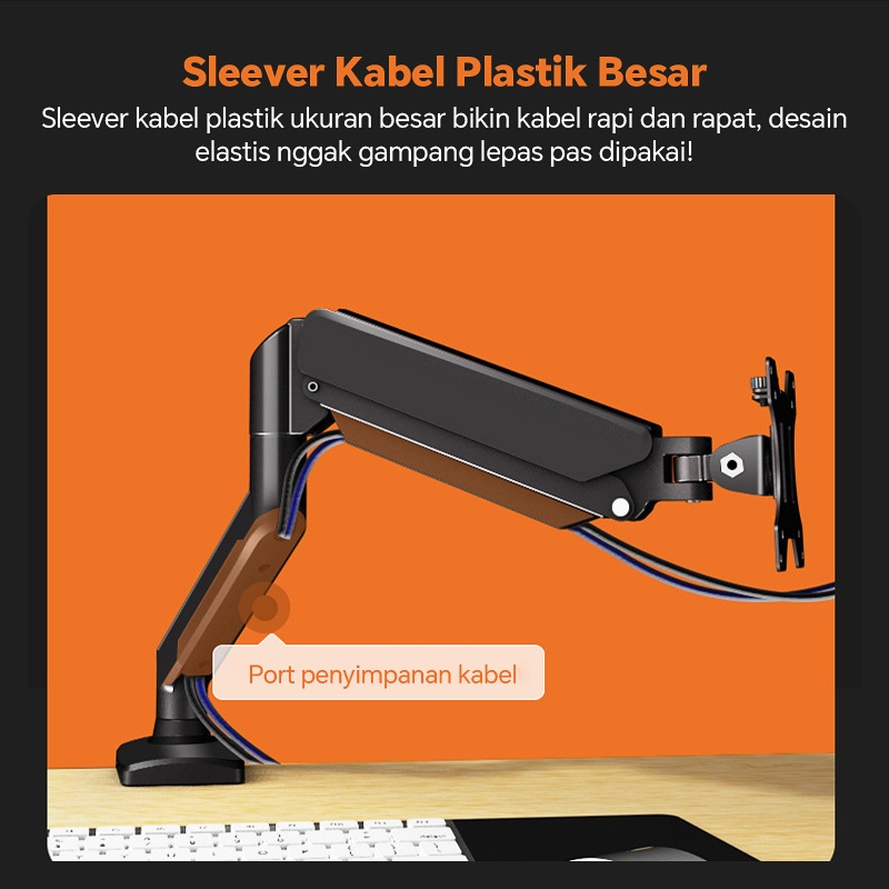 Bebeklucu Dudukan Monitor Lengan Mekanik VESA Standar - Pasang Cepat 5 Langkah, Stabil Bebas Goyang, Sesuaikan Ketinggian/Rotasi 360° untuk Monitor 17-35 Inci (Beban 10kg)