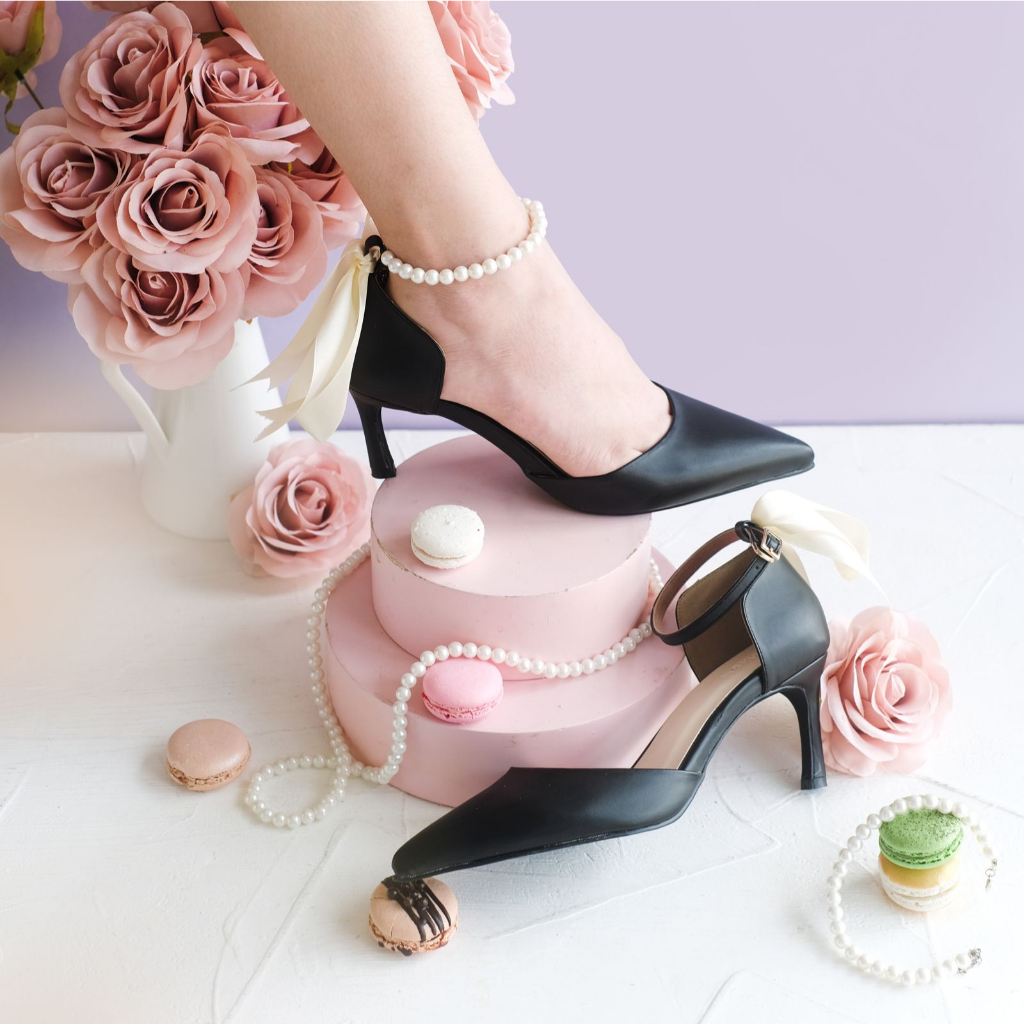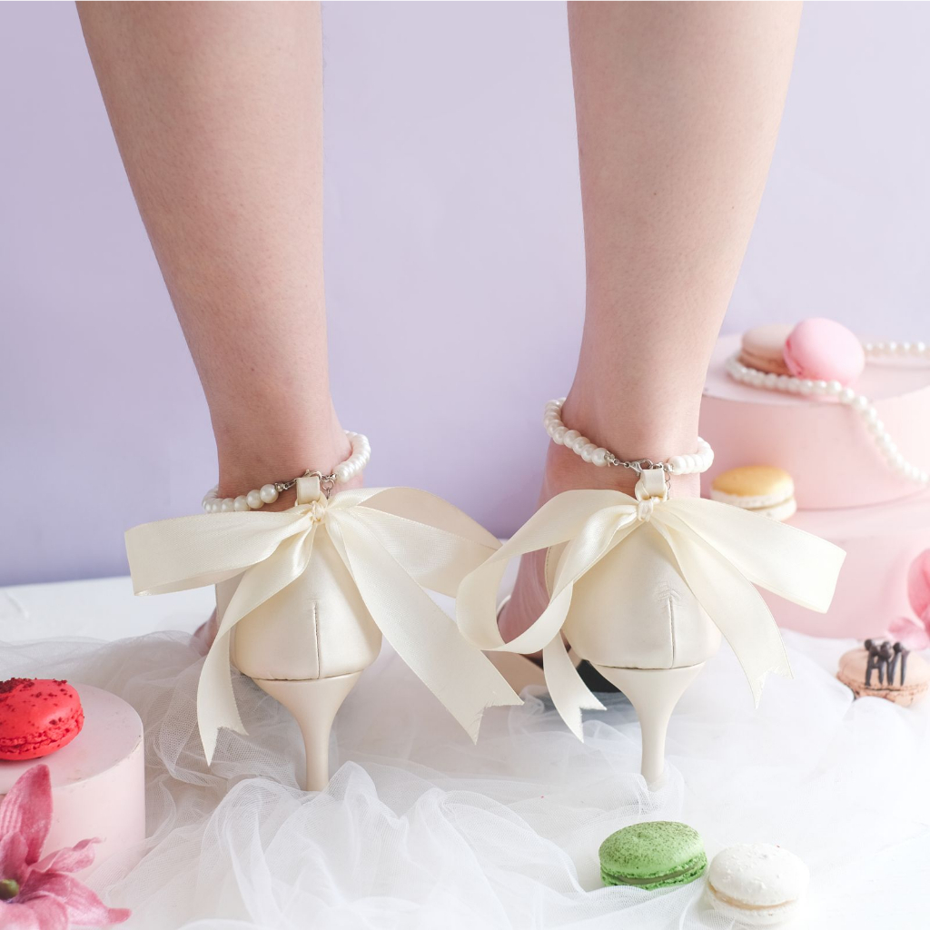 Macaron Heels — Tangerine Marché X Odelyn Mackenzie X Nara | Covered Heels 7Cm | Pearls Anklet | Sepatu Hak Wanita | Dre