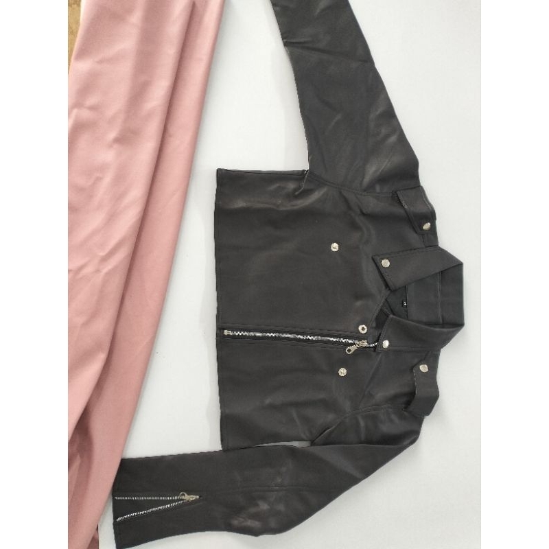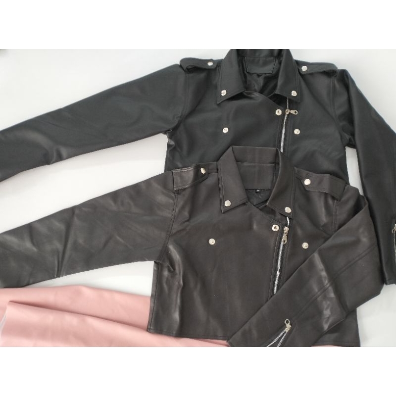Jaket kulit wanita crop style korea semi kulit syntetis