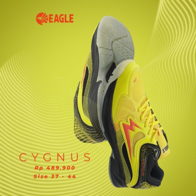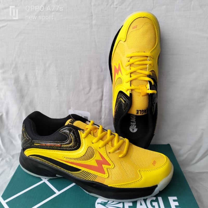 Sepatu Bulutangkis Eagle Cygnus Kuning/Hitam Kulit Sintetis