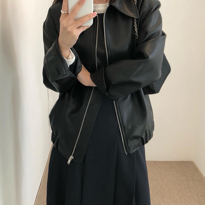 Jacket Kulit cewe Kerah karet Classic Style Jaket Kulit cewe keren casual Jaket Semi Kulit wanita Terbaru