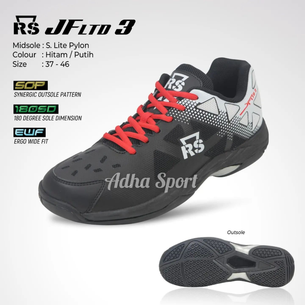 Sepatu Badminton Rs Jf Ltd 3 / Jf Ltd 3 Hitam Putih Original Bulutangkis Adha Sport Store