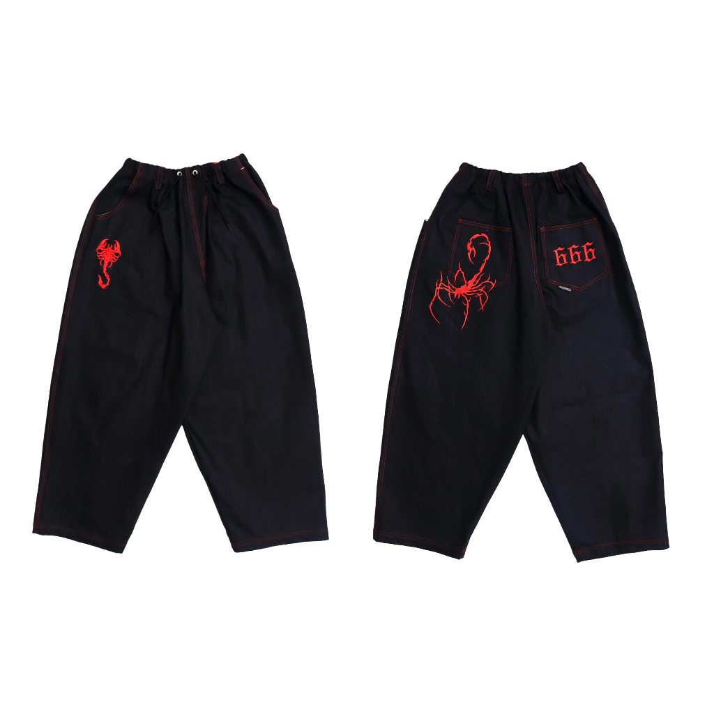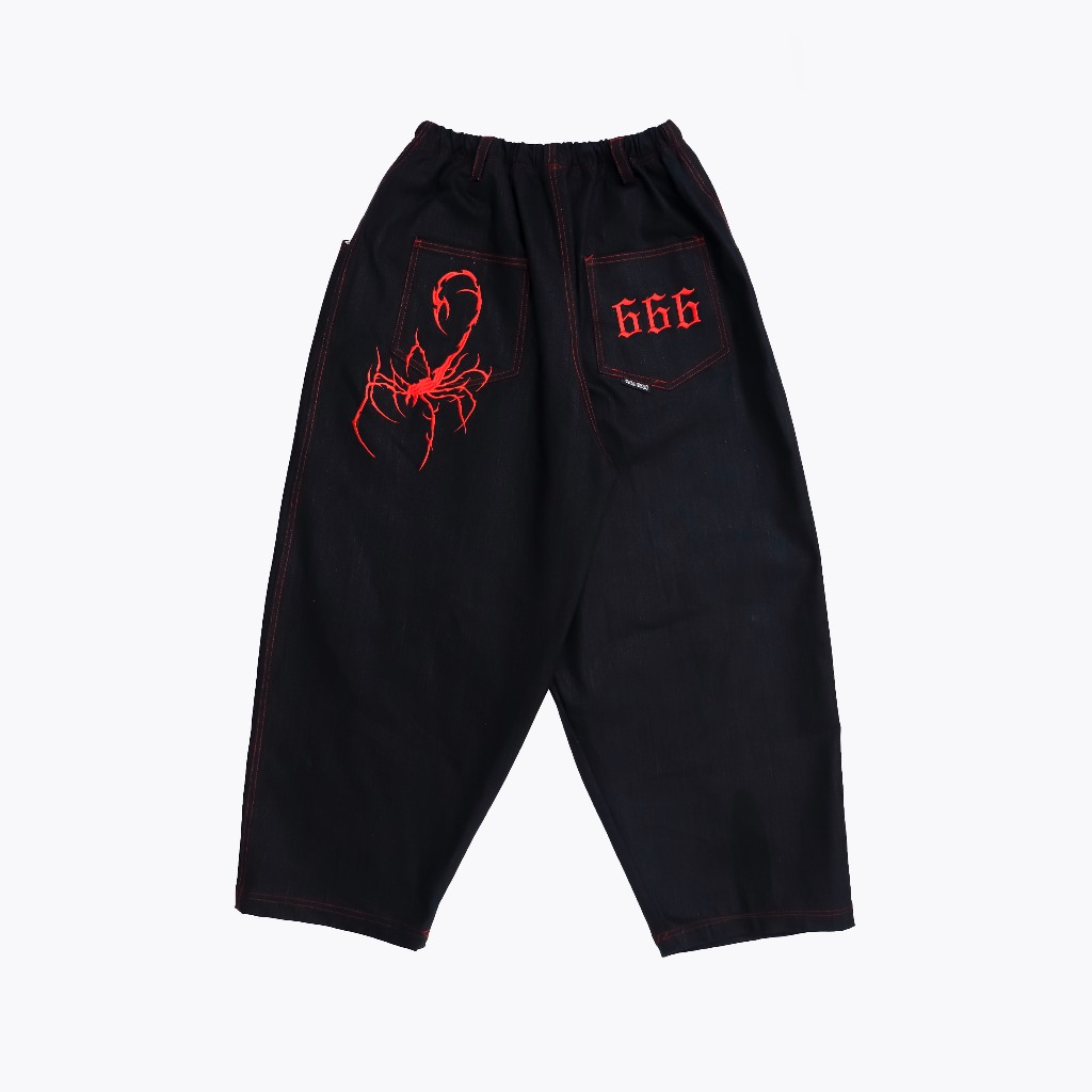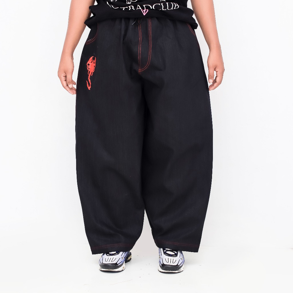 NOTBADCLUB - SC666 - CELANA JEANS BAGGY BALLON HITAM BORDIR SCORPION