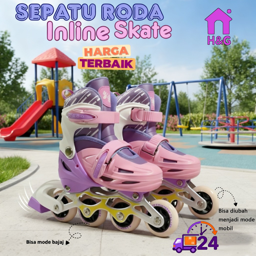 H&G Sepatu Roda Anak Perempuan 4 Roda – Desain Lucu Dapat berubah menjadi mode 3 roda
