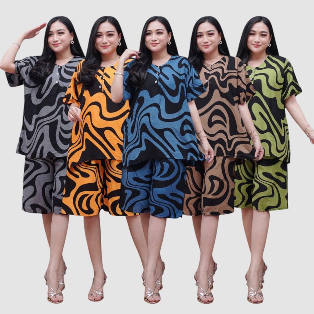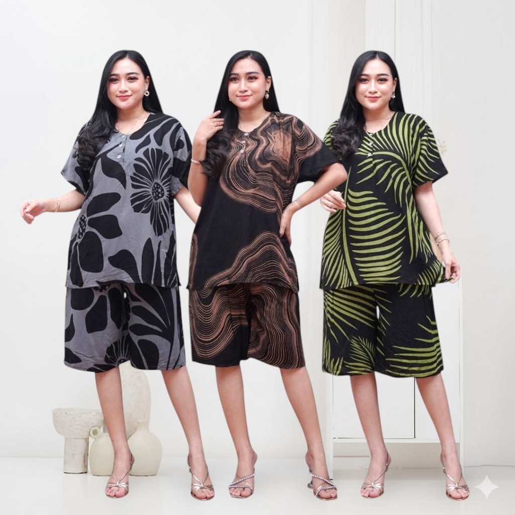 Prass Official - Setelan Rayon Kulot Jumbo LD 115 Baju tidur santai - Lengan Pendek Kancing Depan