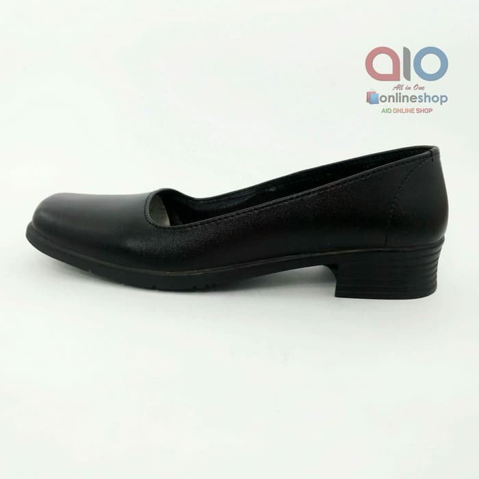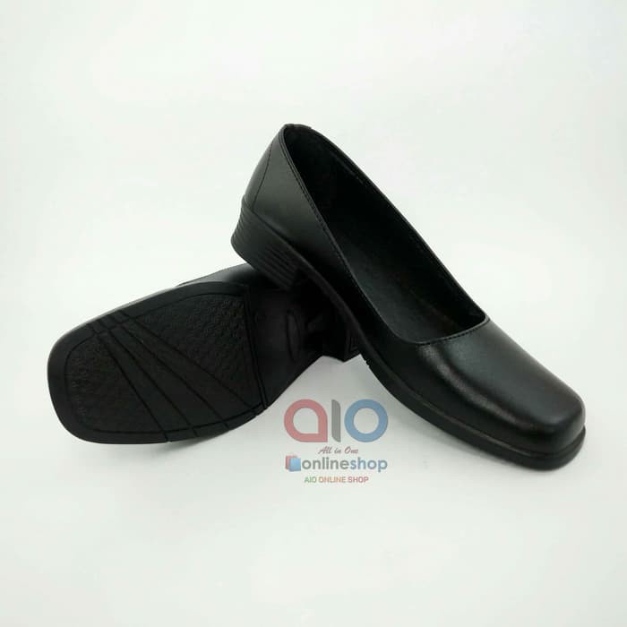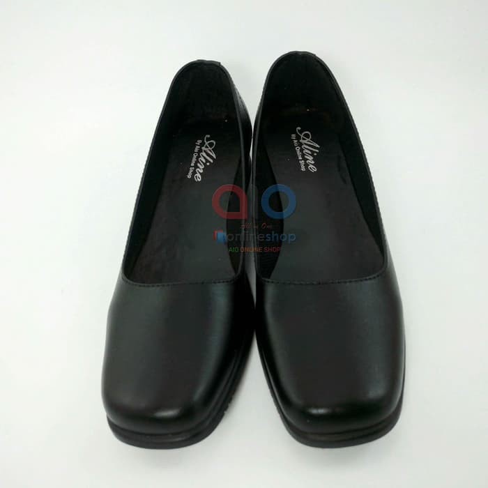 Sepatu Pantofel Wanita 3 Cm Hak Tahu Hitam Polos Formal Guru Sekolah Kantor Kerja Aw06