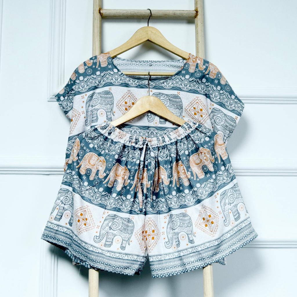 SETELAN BAJU TIDUR PENDEK MOTIF GAJAH BALI RAYON