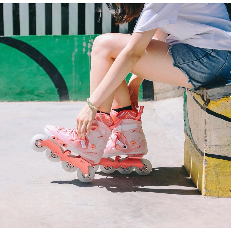 sepatu roda flying eagle x5f putih pink transparan dan hitam transparan