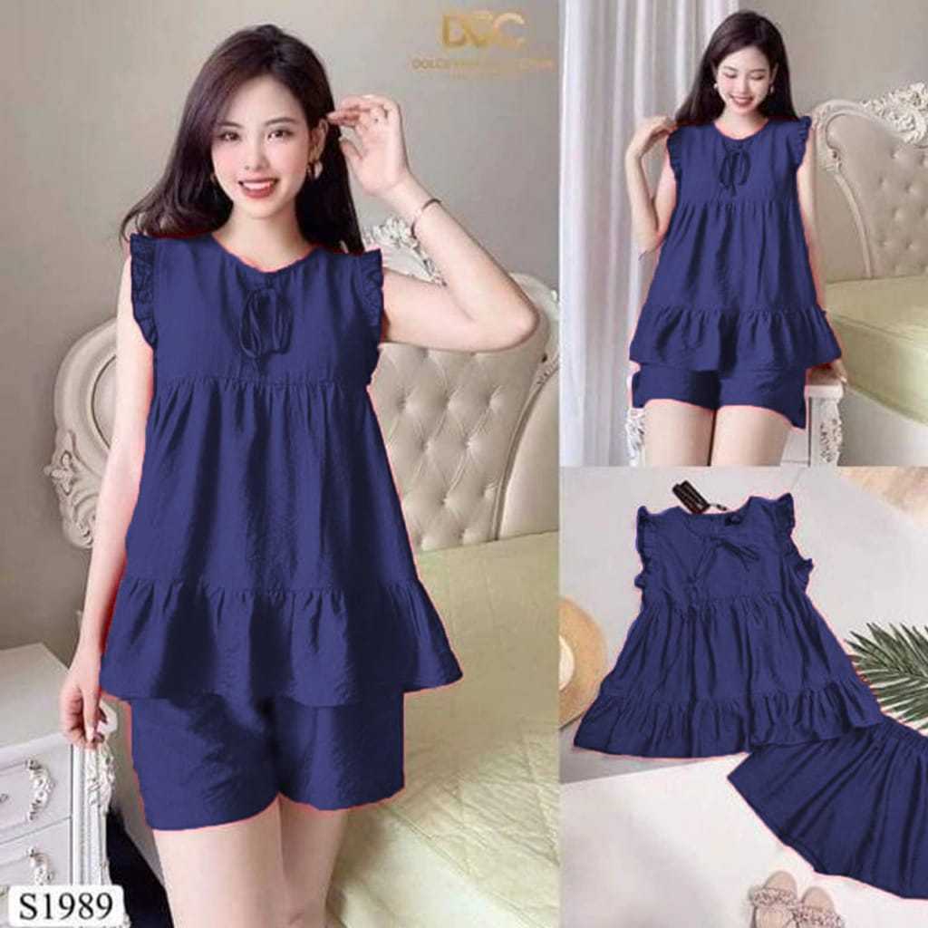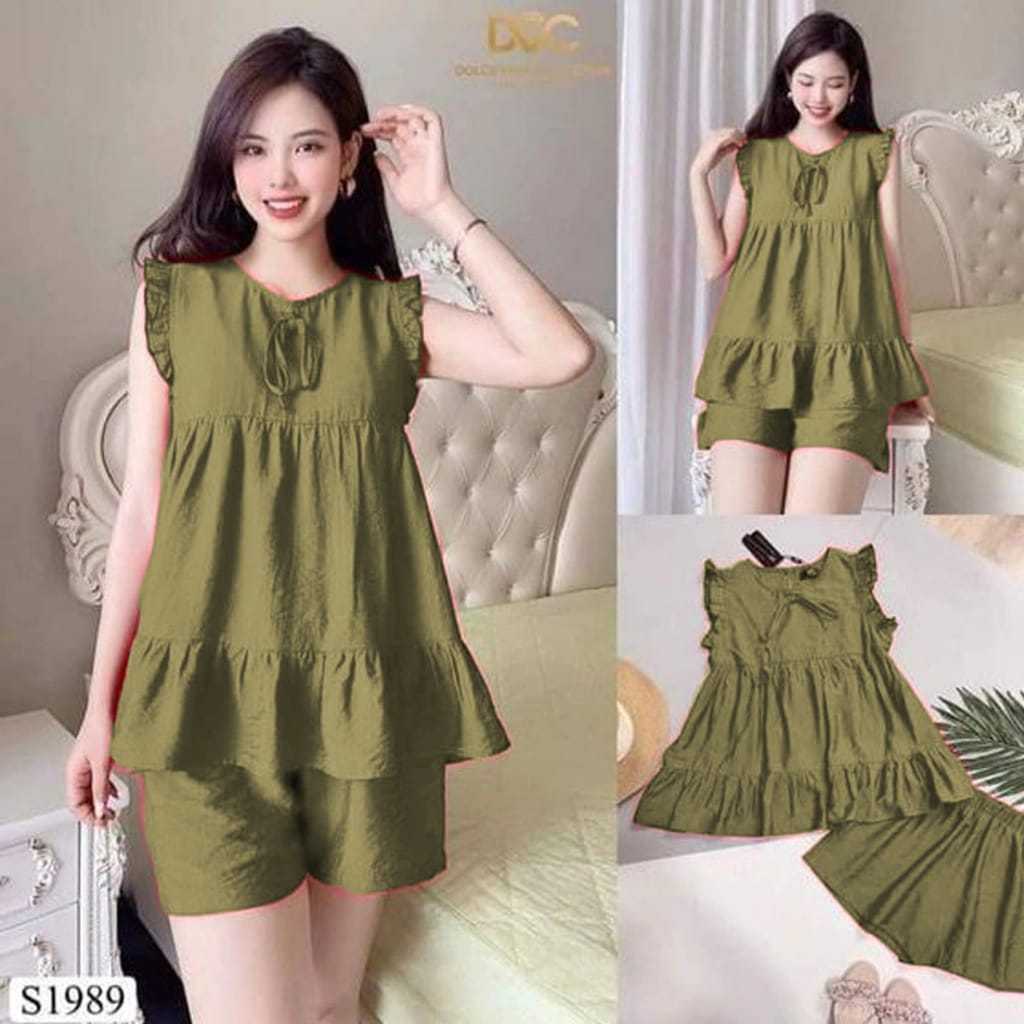 setelan santai pakaian wanita bisa untuk baju tidur juga. bahan krincle premium tebal adem gak luntur