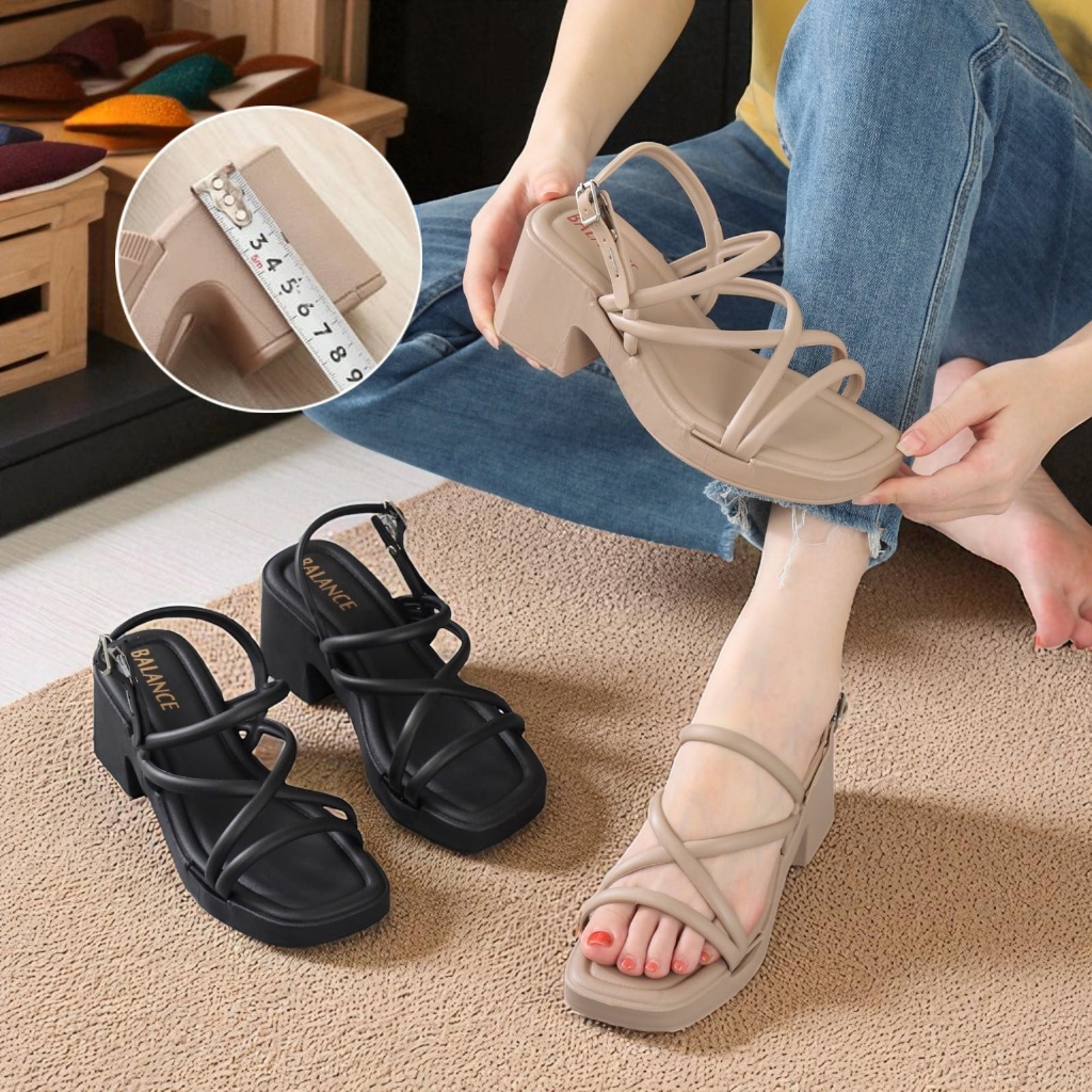 Sandal Hak 7 Cm Tali Silang Gladiator Elegan Jelly 2317 Thtlx
