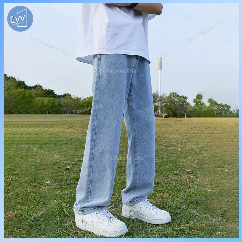 Celana jeans pria celana pria korean style baggy pants pria straight jeans kulot celana gombrong cowok celana panjang jeans pria biru muda celana skena pria celana oversize pria