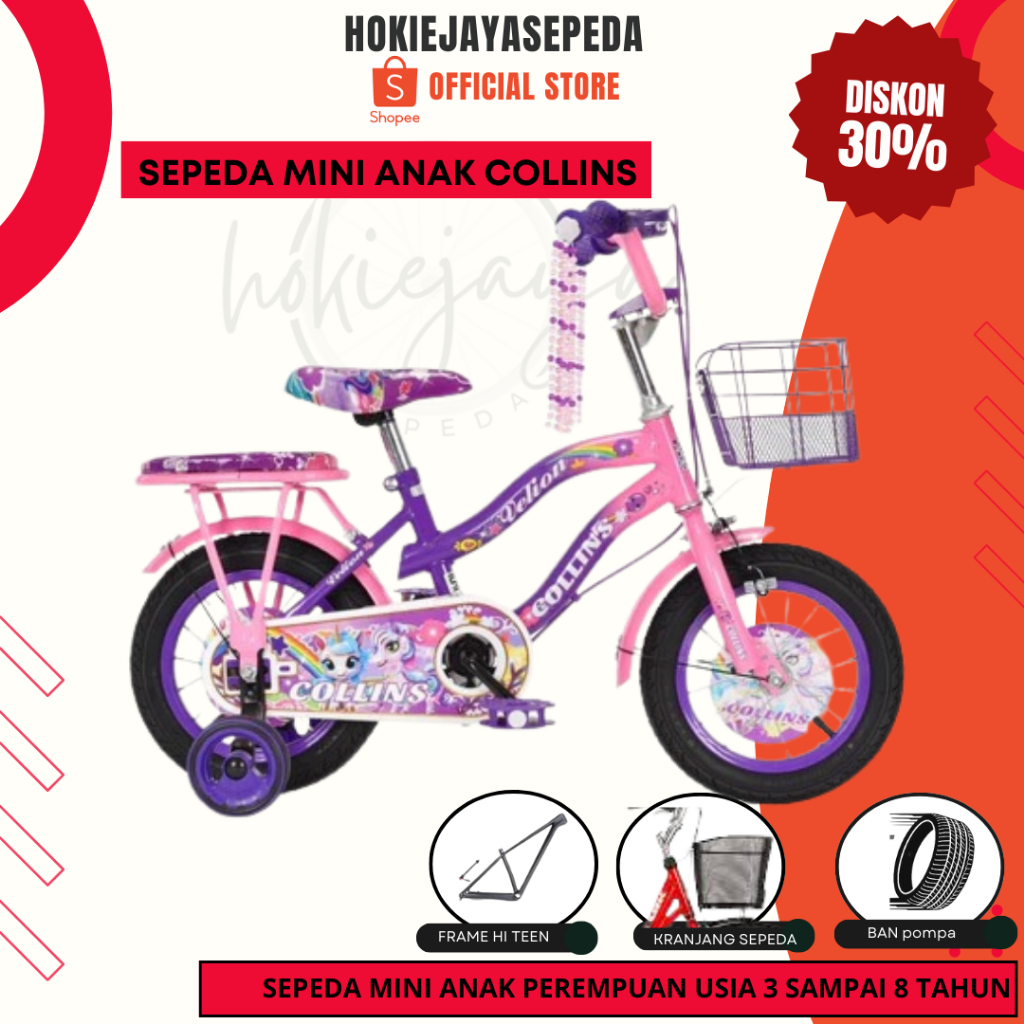 Sepeda Anak perempuan 12 inch 16 inch 18inch COLLINS Little Pony UNICORN Kranjang - Boncengan - roda samping - CEWEK usia 3 - 8 tahun / sepeda mini murah lucu ORI