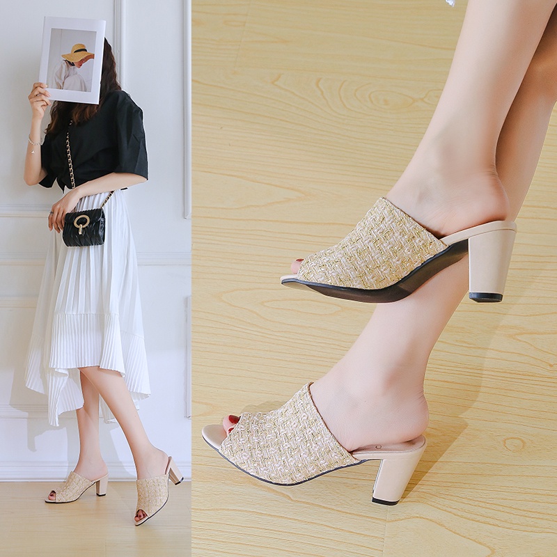 Coline Cln-578 Tweed Heels Hak Chuncky #C1110