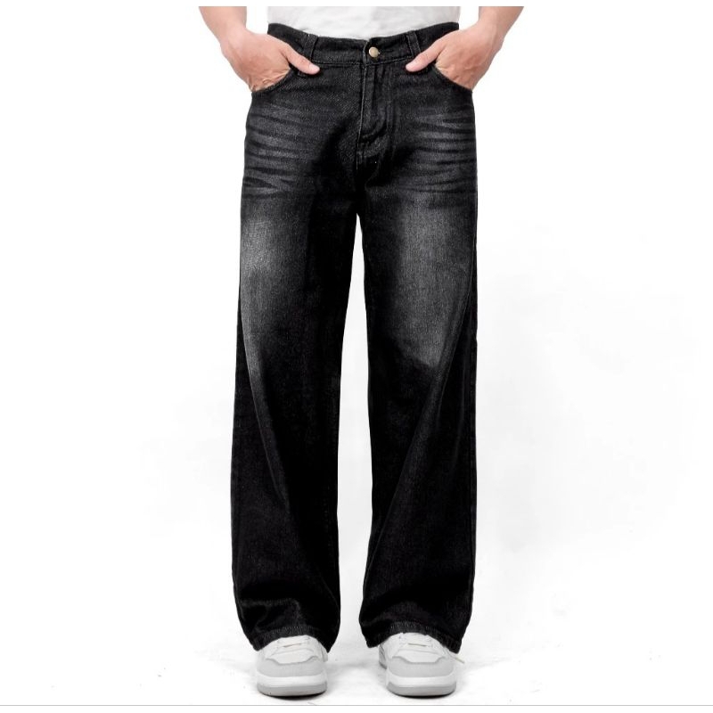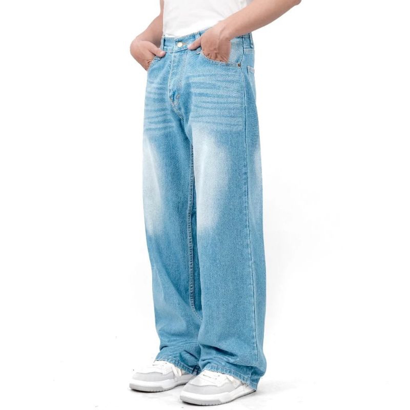 Celana Jeans Pria wanita Baggy Pants uniseks Korean Style Oversize Straight Loose Blue Reguler Fit Wide Leg skena termurah kekinian