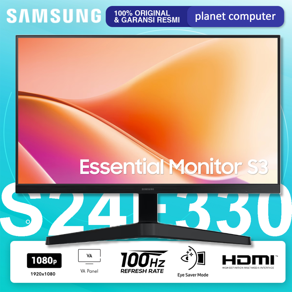 Samsung LS24F330 Monitor LED S24F330 24" VA 1080p FHD 100Hz HDMI VGA Vesa 100x100mm Eye Saver Mode Flicker Free Image Size Windows11 Certification