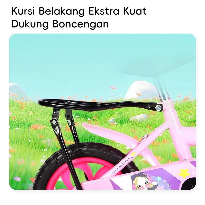 BEIGE Sepeda Anak Roda 4 Keranjang Ukuran 12 dan 14 Inci Warna Biru Ungu Pink Cocok Usia 6 Tahun