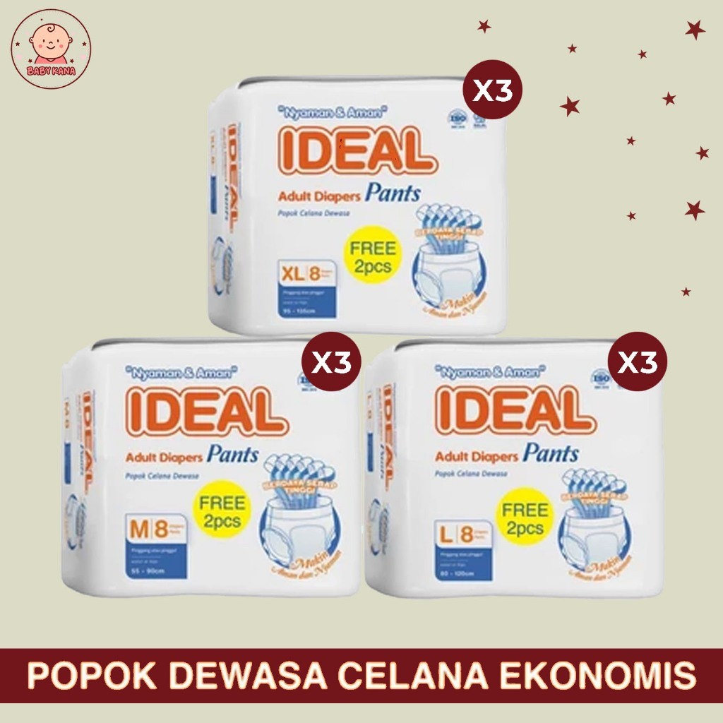 IDEAL Popok Dewasa Tipe Celana Anti Bakteri size M L XL 10 Pcs