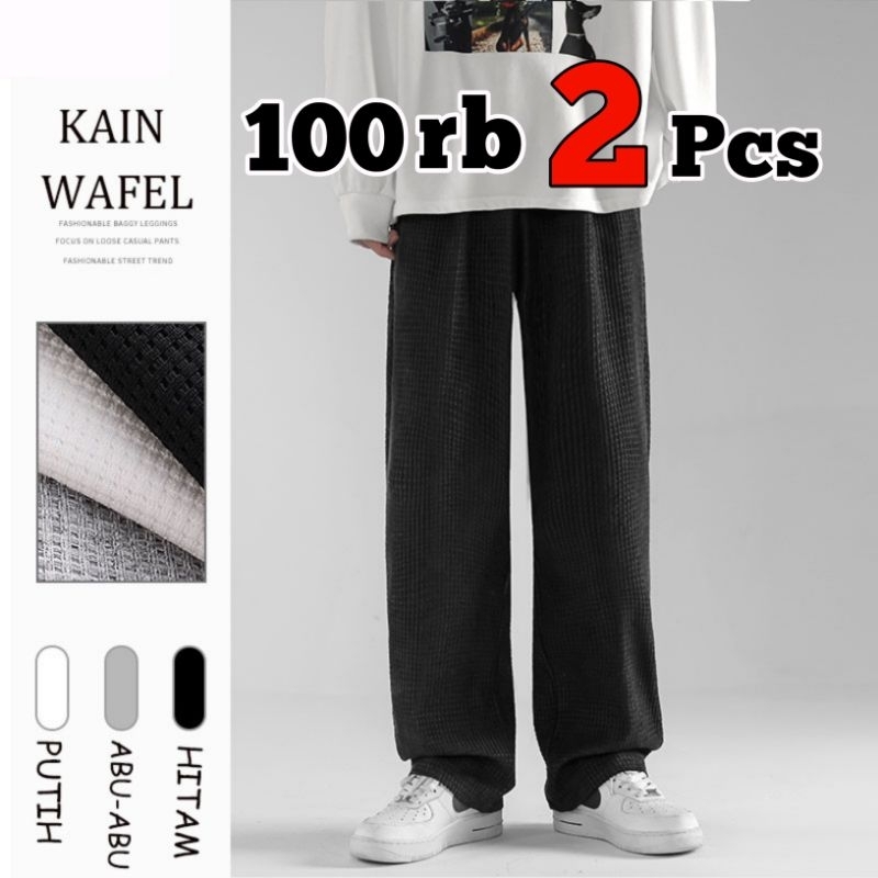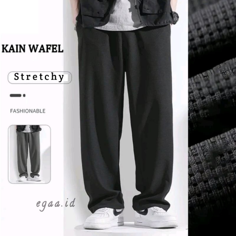 Celana Loose Pants Celana Panjang Wafel Pria Korean Style Kasual Celana Gombrong Baggy Pria