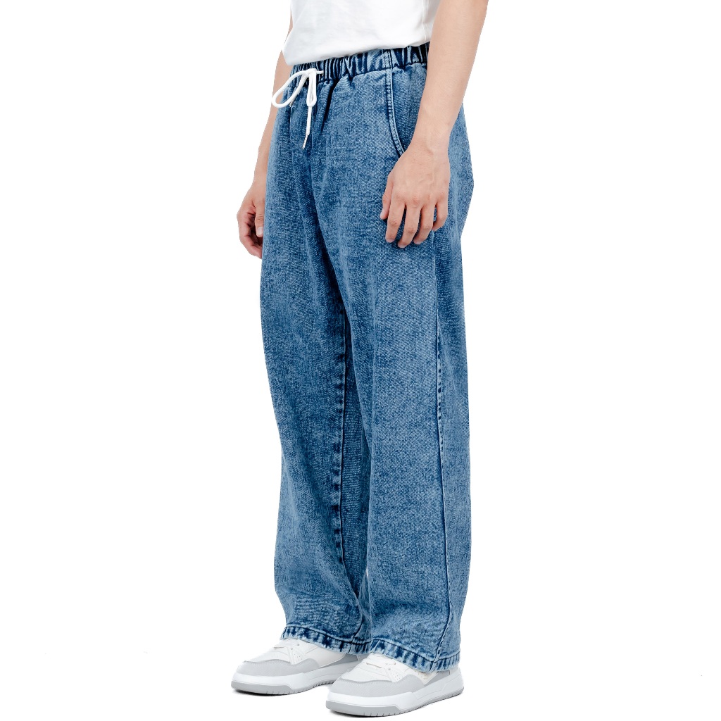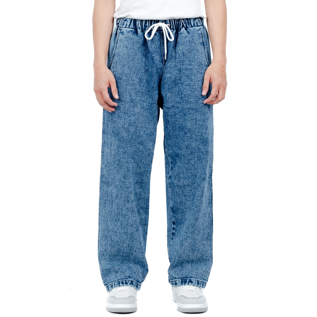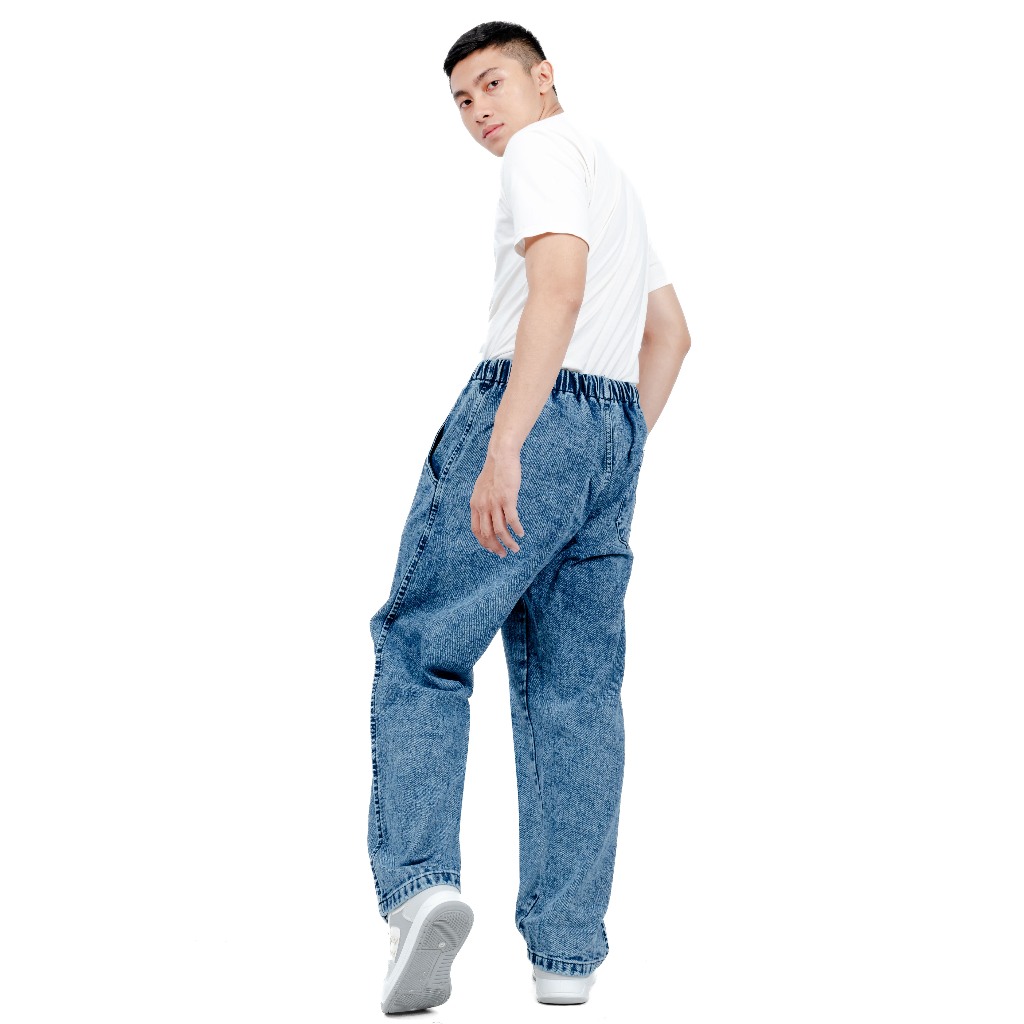 Gizmo - Baggy Pants Relaxed Jeans Celana Baggy Blue Sandwash Gombrong Karet Pinggang Oversize Denim
