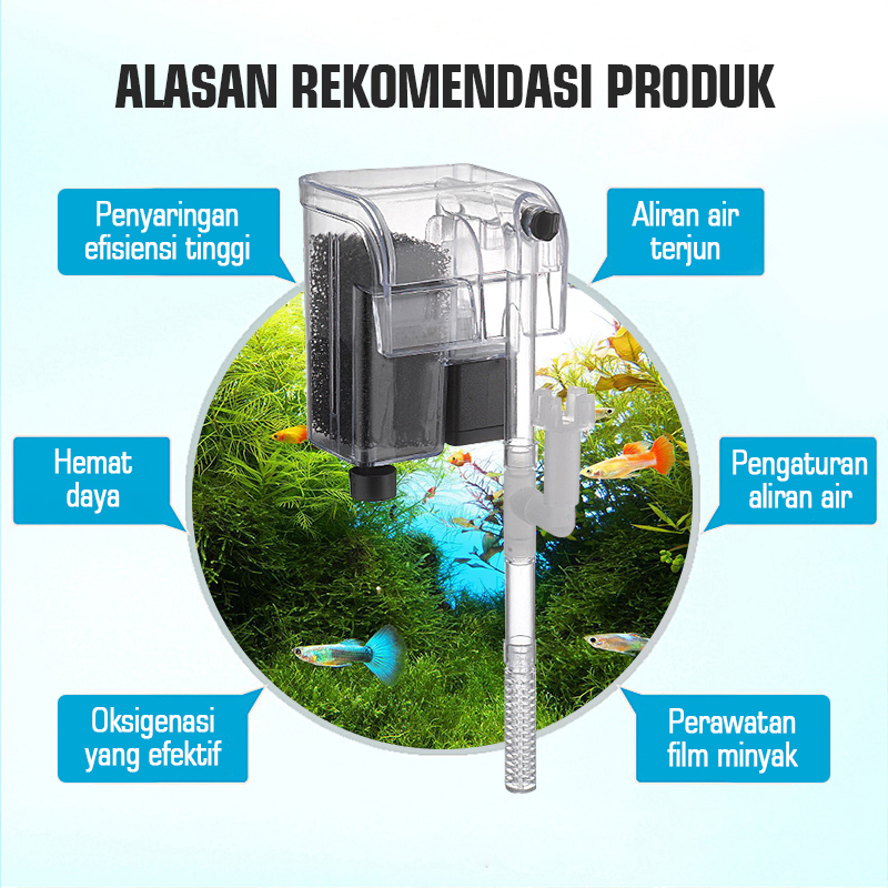 3 in 1 Filter Air Aquarium Gantung 3W 250L/Jam Penyaring Akuarium Aquascape