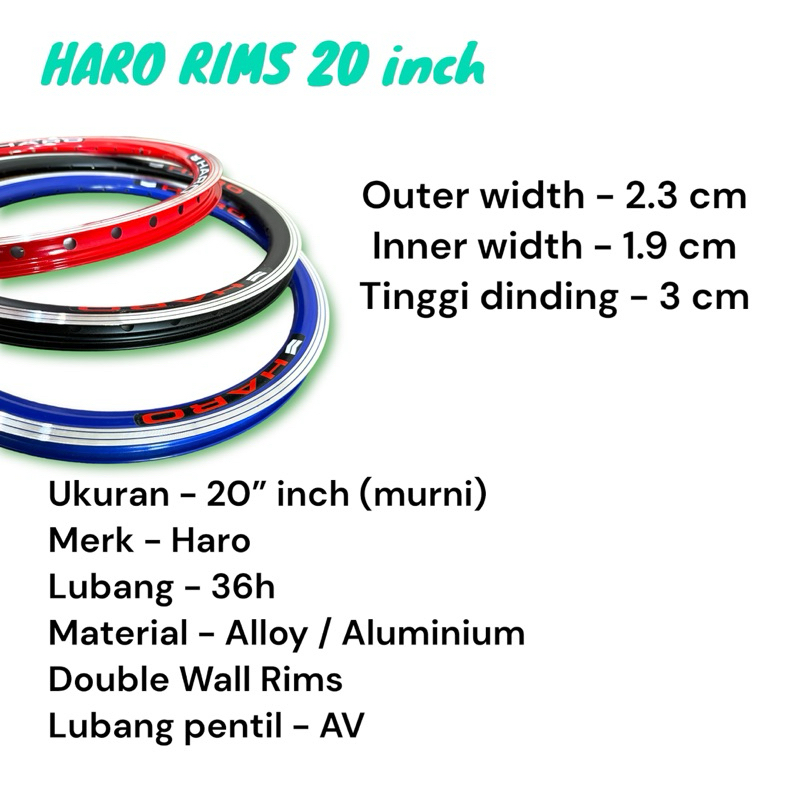 (( HARO / 20 inch / 36H )) Velg Rims Rim Sepeda 20inch BMX Seli Lipat Folding Bike Mini Minion Velk Aluminium Lubang Lobang 36 H