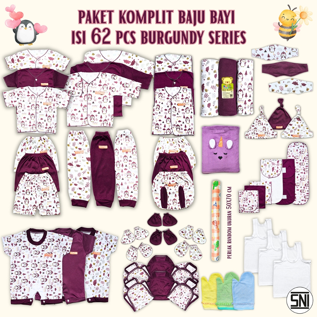 Paket Hemat Perlengkapan Baju Bayi Baru Lahir Serian Burgundy Terkomplit SNI BOLO BOLO