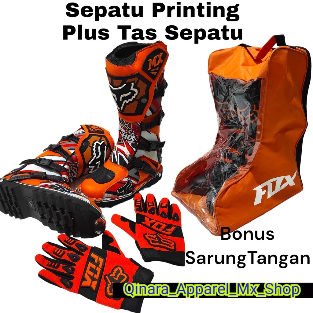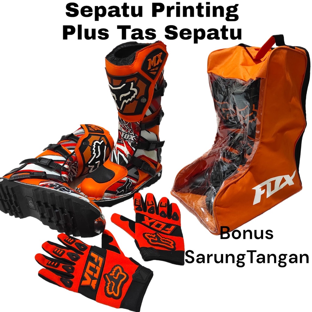 sepatu trail cross printing plus tas buat sepatu bonus sarung tangan satu set sepatu trabas or adventure dan tas satu set cocok dan keren sepatu gunung ORANGE bisa