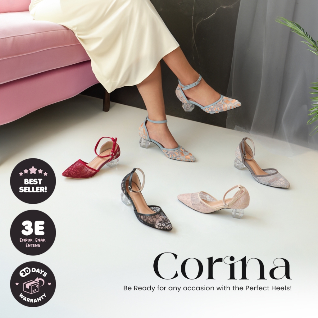 Alivelovearts Corina Heels 5Cm Sepatu Lace Wanita Heels Crystal Kekinian