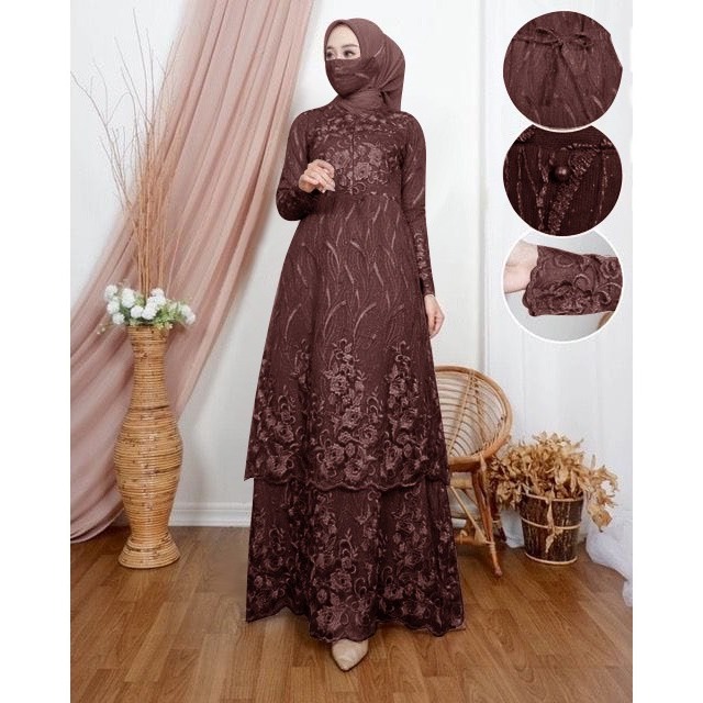 MAXI VIRA (M L XL XXL XXXL) GAMIS BRUKAT DRESS SUSUN FULL BRUKAT BUSUI FRIENDLY GAMIS PESTA KONDANGAN BRIDESMAID TILE MEWAH GAMIS TERLARIS