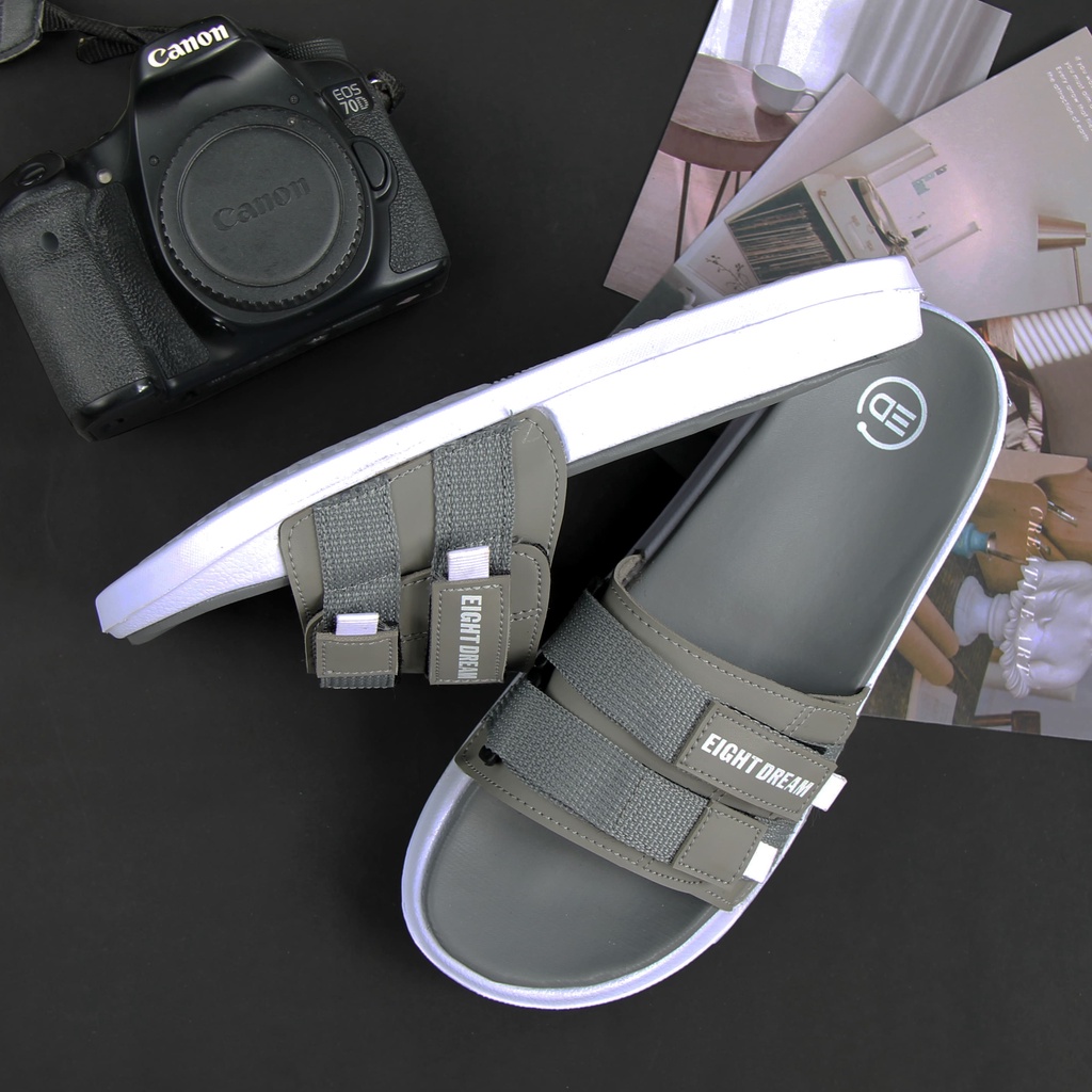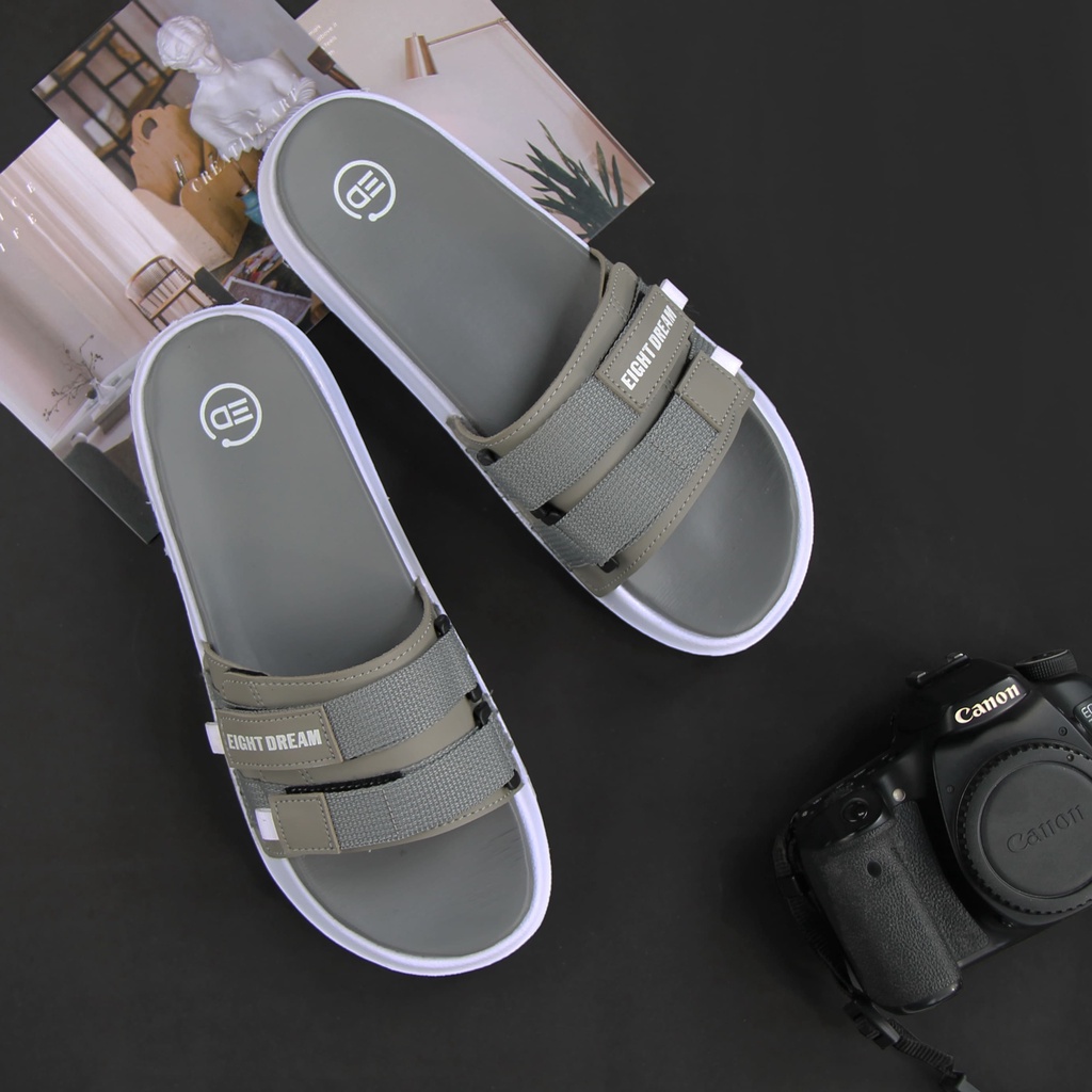 Eight Dream Sandal Casual Pria Wanita Sandal slide Sandal slop ringan sendal main traveling | Perfect Grey