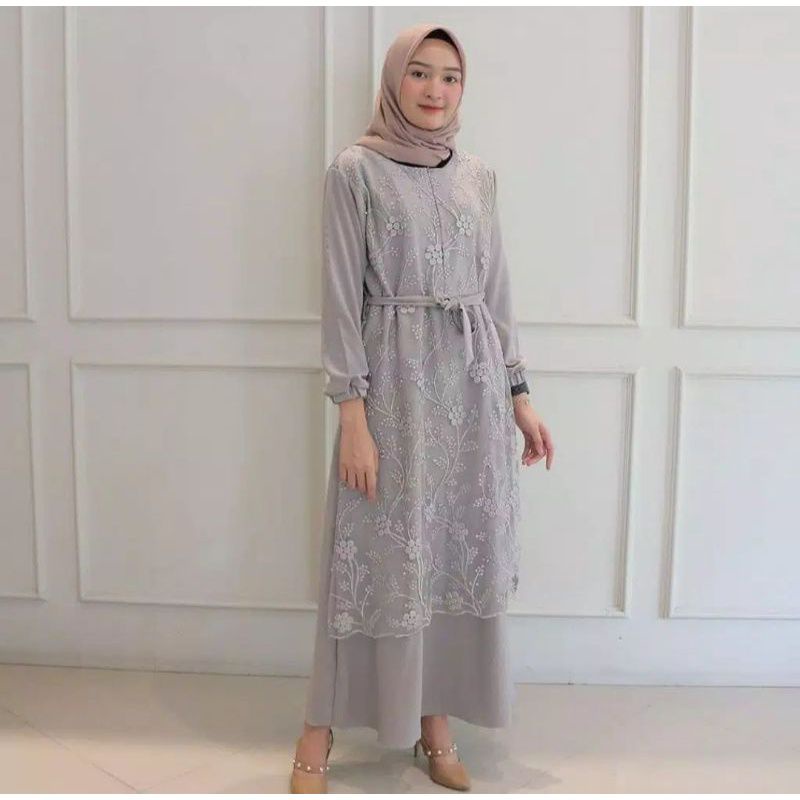 GAMIS BRUKAT TILE MUTIARA GAMIS WANITA TERBARU PAKE TALI
