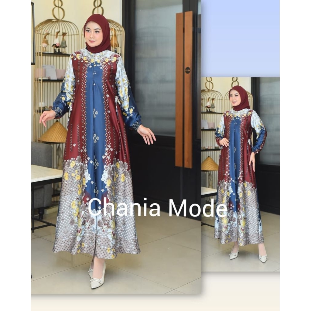 (FREE BROS 1 PCS) GAMIS SAFIRA SILK PRINTING PREMIUM| Gamis cantik motif Bunga Terbaru Ready seragaman M L XL XXL