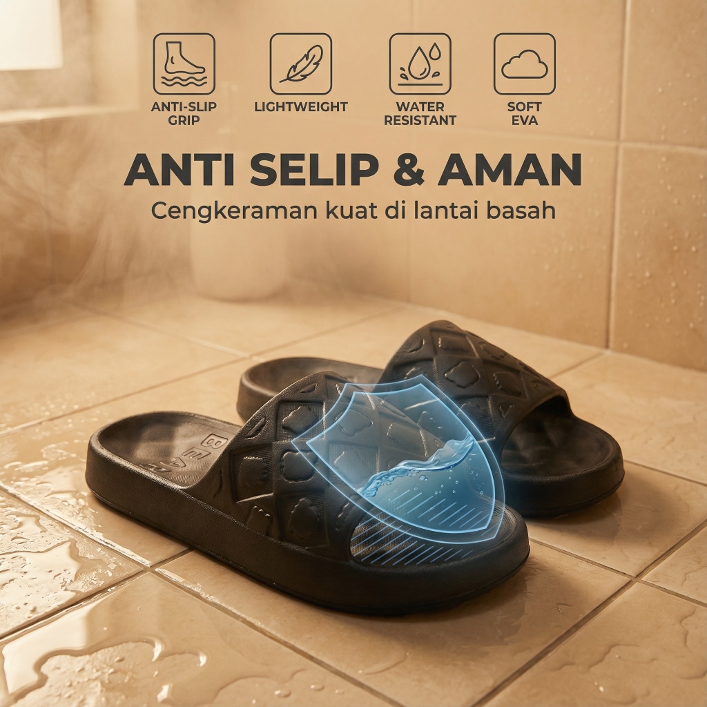RUVON-Sandal Pria Tebal Anti Slip EVA Nyaman Empuk Bisa Indoor Outdoor
