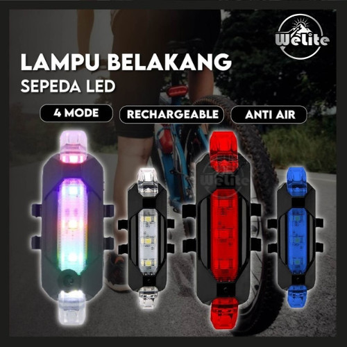 Lampu Sepeda Belakang LED 4 Mode Cahaya USB Charger Anti Air Bicycle Tail Light Rechargeable