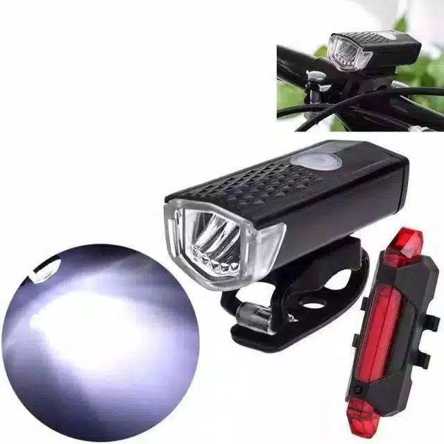 Paket Murah 2in1 LAMPU SEPEDA DEPAN BELAKANG LED LIGHT USB RECHARGE