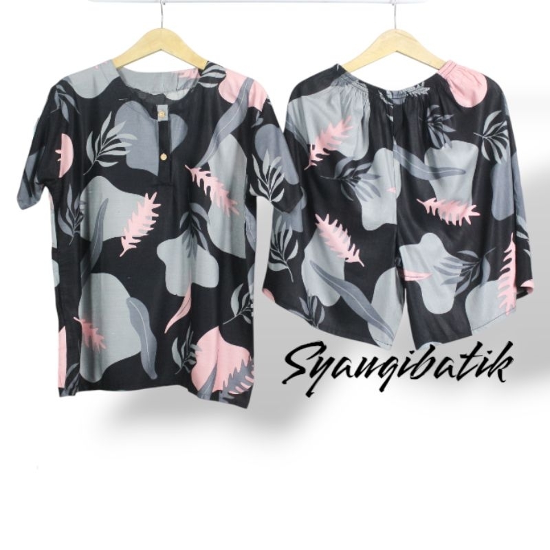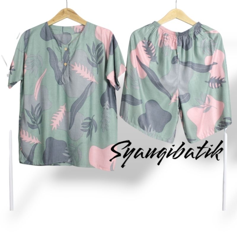 Setelan Baju Tidur Piyama Celana Pendek Wanita Dewasa Motif Lauren Bahan Rayon