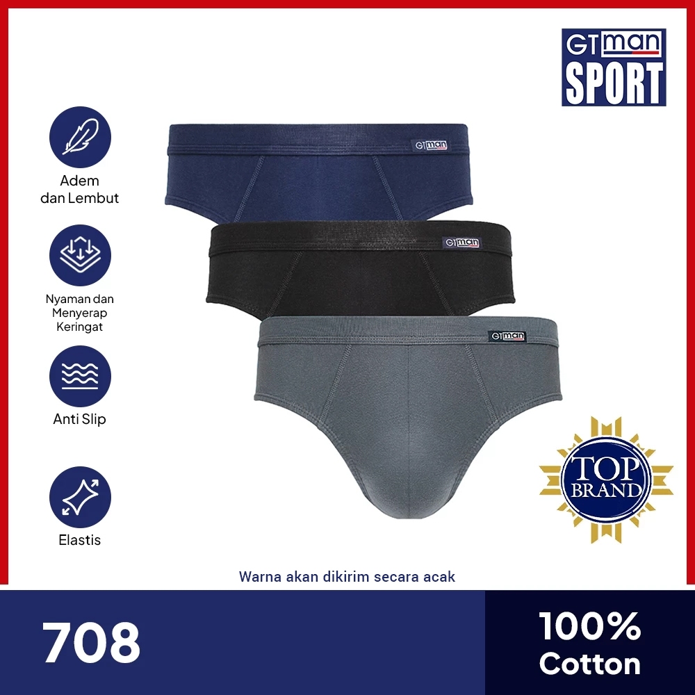 GT Sport Celana Dalam Pria GT MAN 708 Isi 3 Pcs - Briefs Men Underwear Anti Slip Bahan Adem dan Lembut 100 PERSEN Cotton