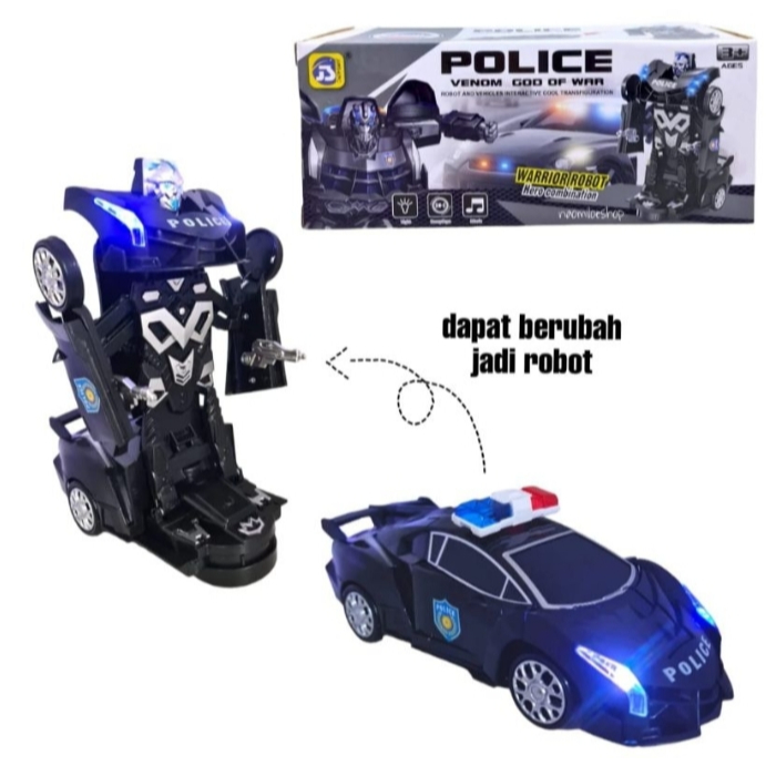 JS Mainan Anak Mobil Polisi Hitam 2IN1 Mobil Bisa Jadi Robot